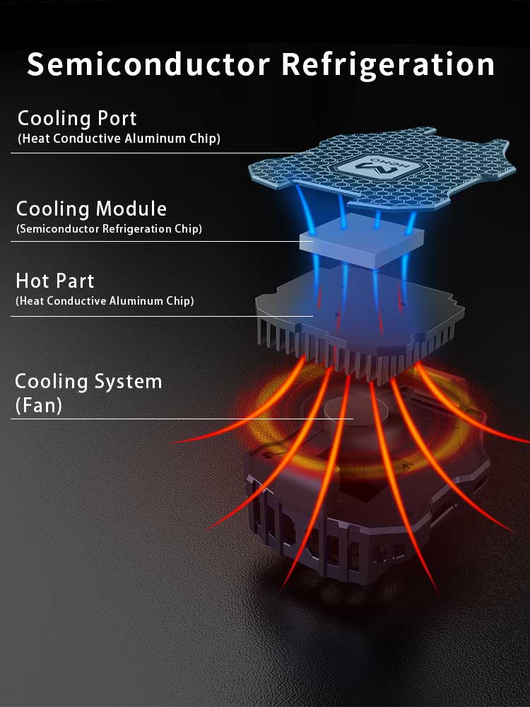 1.3 সেকেন্ডের অতি দ্রুত কুলিং : মোবাইল ফোন রেডিয়েটর একটি নতুন অর্ধপরিবাহী রেফ্রিজারেশন প্রযুক্তি গ্রহণ করে cool শীতল প্লেটগুলি মোবাইল ফোনের উত্তপ্ত চলমান অংশ (সিপিইউ) এর সাথে নিবিড়ভাবে মেনে চলে, একই সাথে তাপ শোষণ করে এবং তাপকে বিচ্ছিন্ন করে, তাই গরম মোবাইল গেম খেলে আপনার ফোনটি তাত্ক্ষণিকভাবে শীতল হবে।